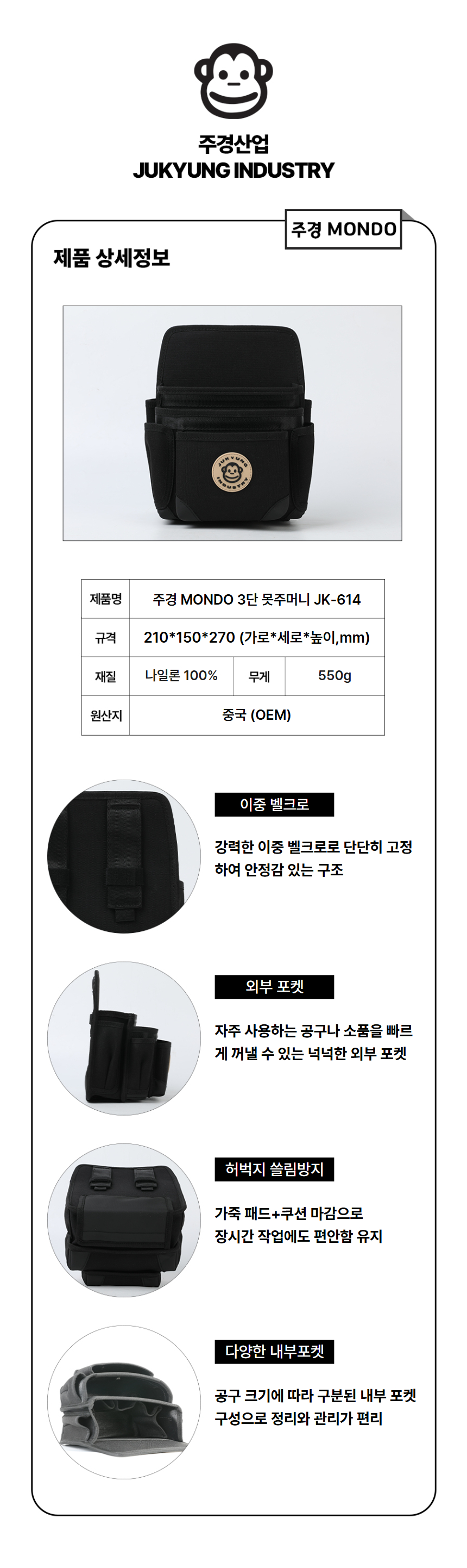 • 주경산업 MONDO 3단 못주머니 JK-614